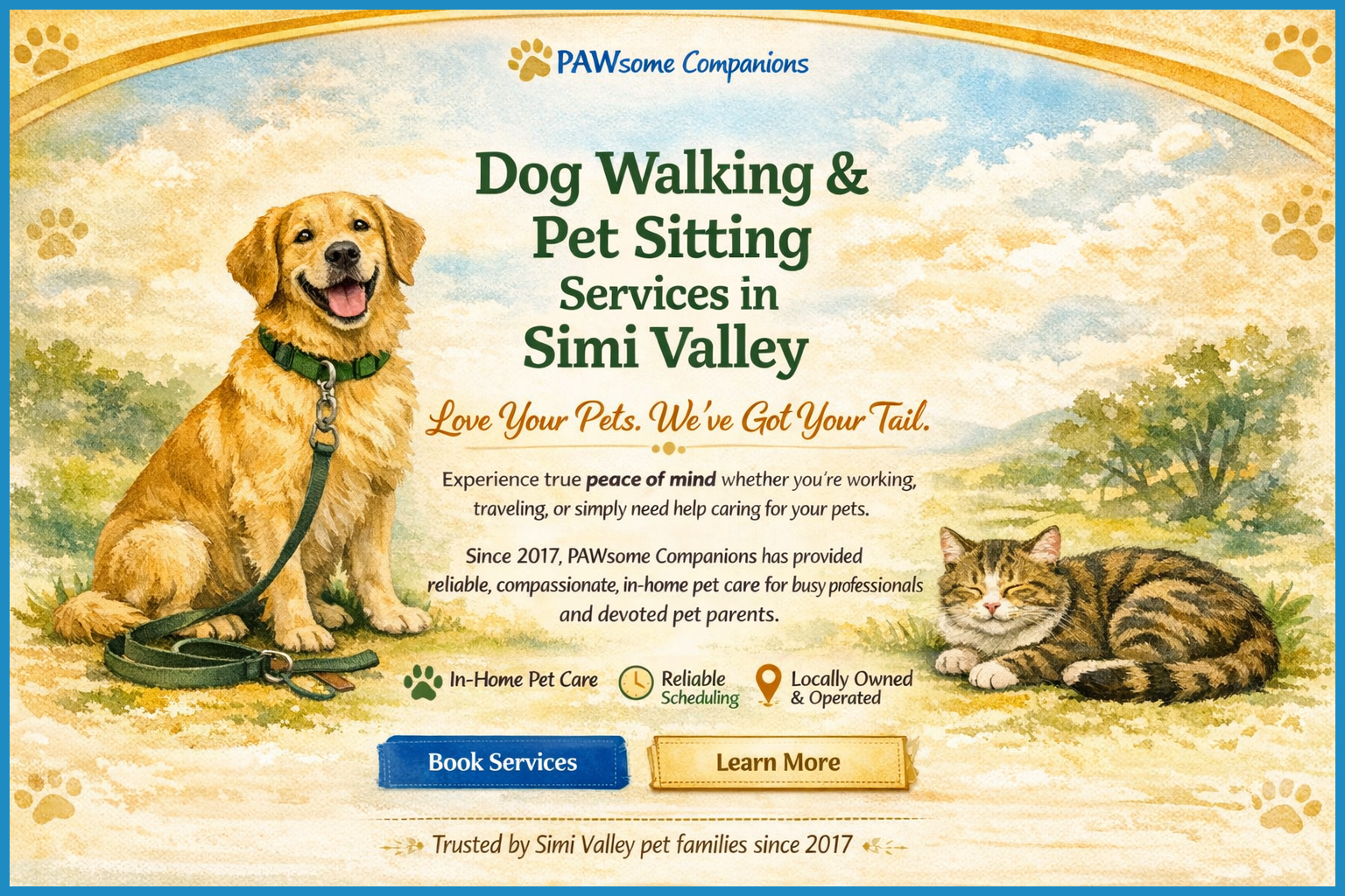 At PAWsome Companions, we provide more than just pet care — we deliver peace of mind. Whether you’re away for a few hours or several days, our compassionate, Fear Free Certified team ensures your pets are safe, happy, and cared for right in the comfort of their home.